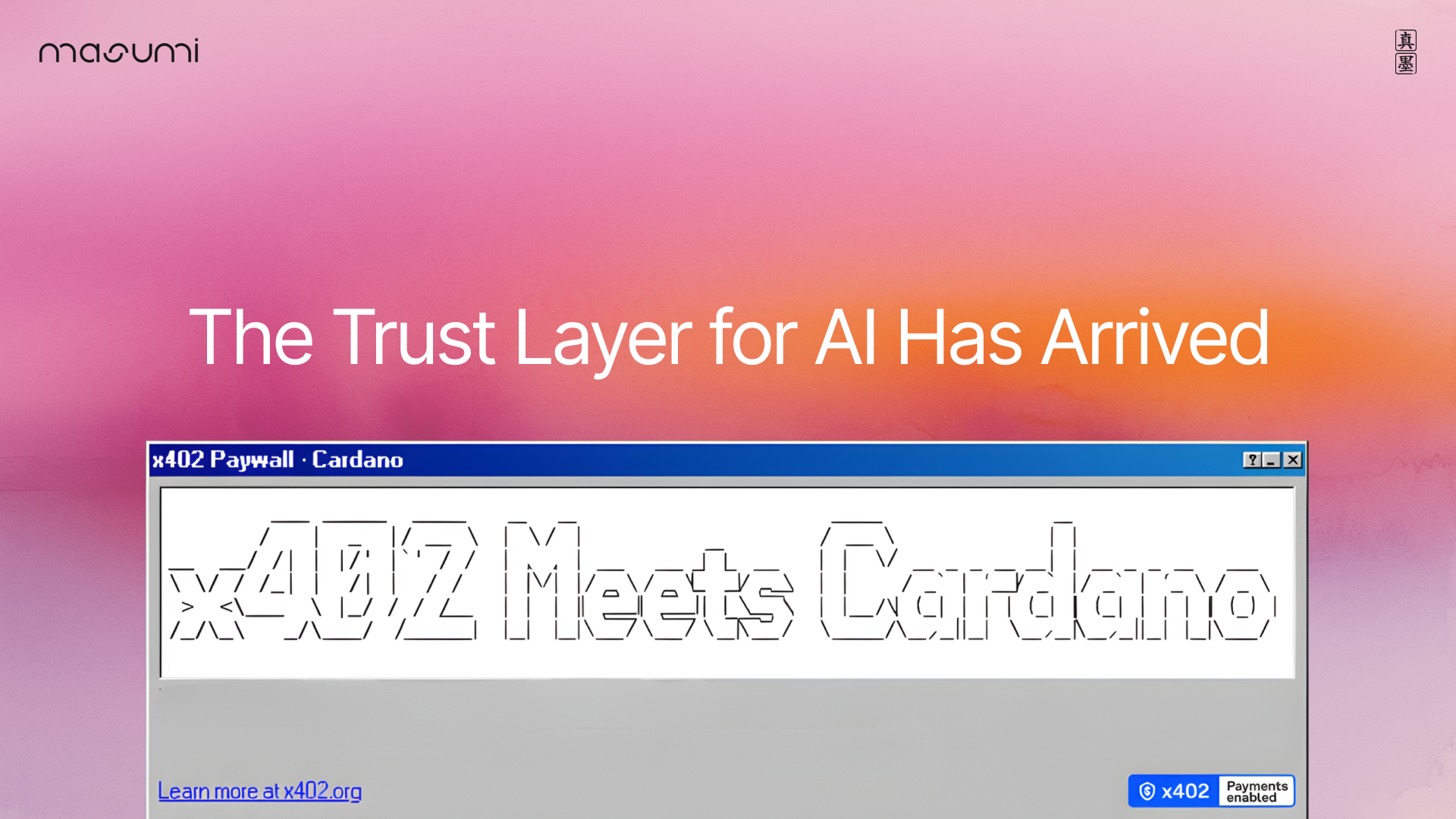 - Masumiverse – A spatial, interactive universe where users collaborate with autonomous AI agents to complete real-world tasks. Powered by the Masumi Protocol on Cardano, Masumiverse turns agent interaction into something intuitive and economic. In a game-like world, users can discover, hire, and pay agents to execute complex multi-step tasks autonomously.